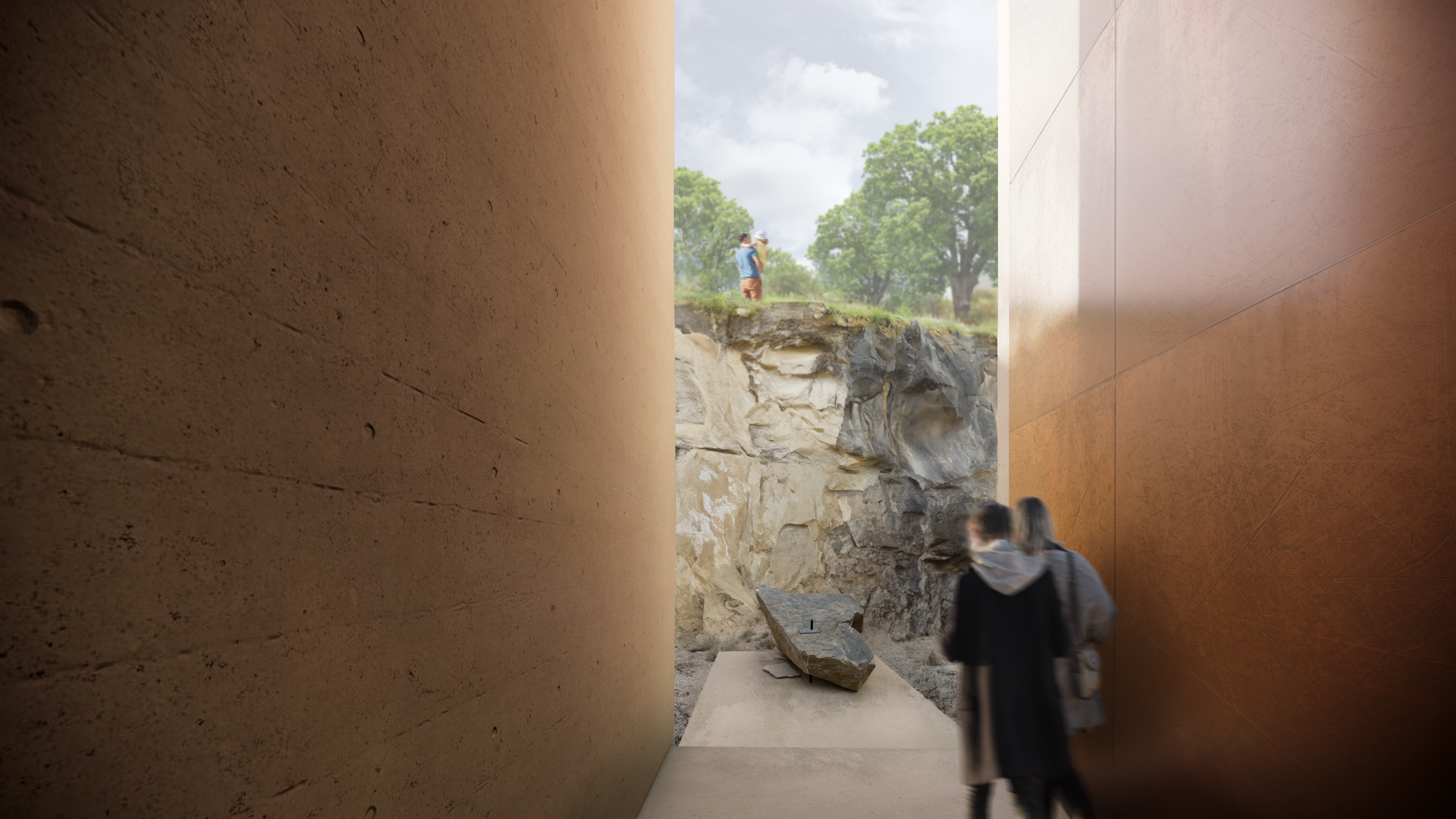 cast concrete, white oak, walnut, beeswax